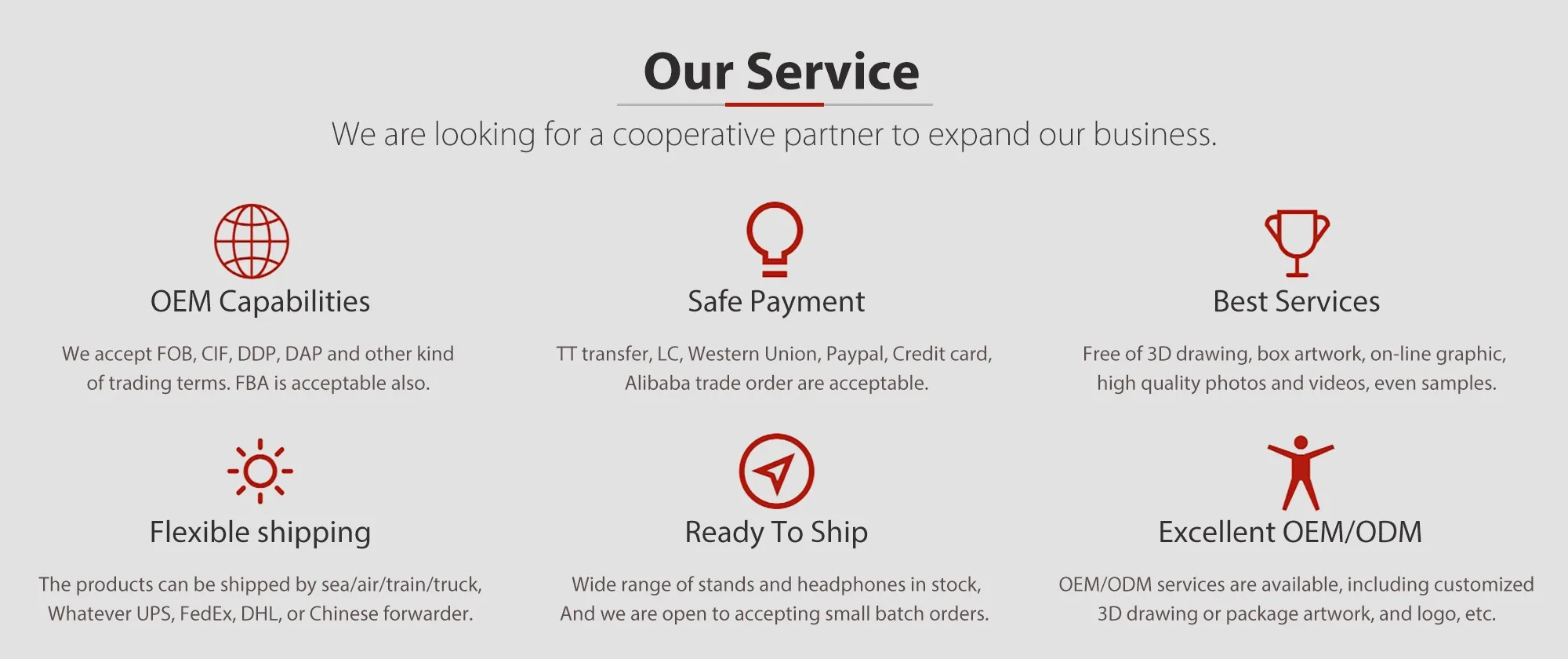 मुख्य उत्पादों: स्टैंड, केबल, माइक्रोफोन, हेडफोन